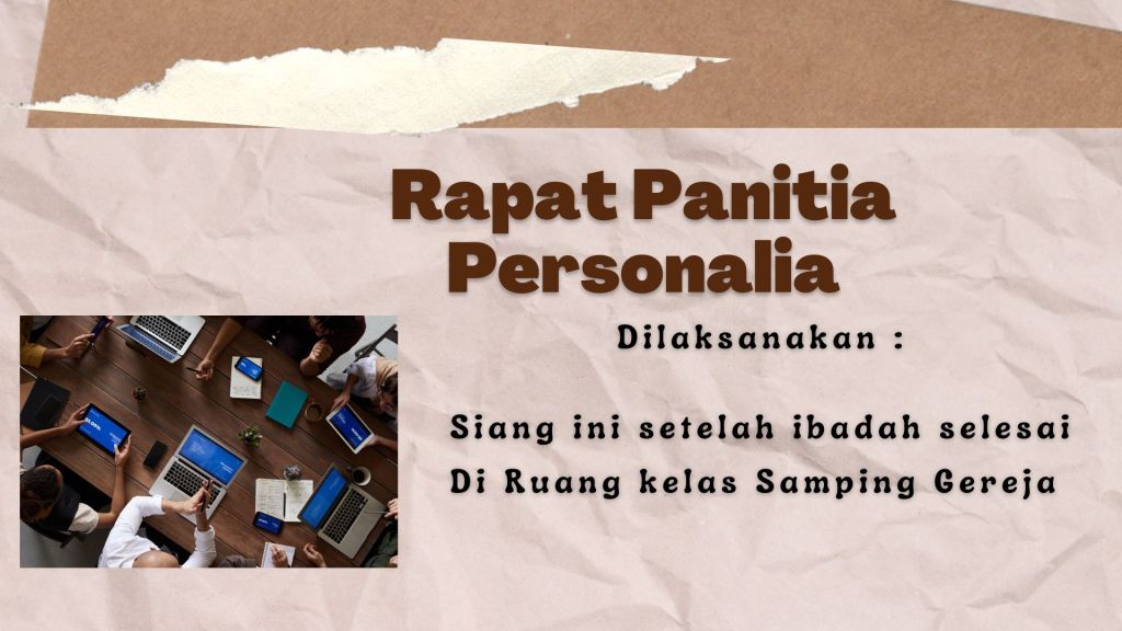 Diberitahukan seluruh Panitia Personalia diundang hadir dalam Rapat siang ini setelah ibadah diruang kelas samping Gereja.