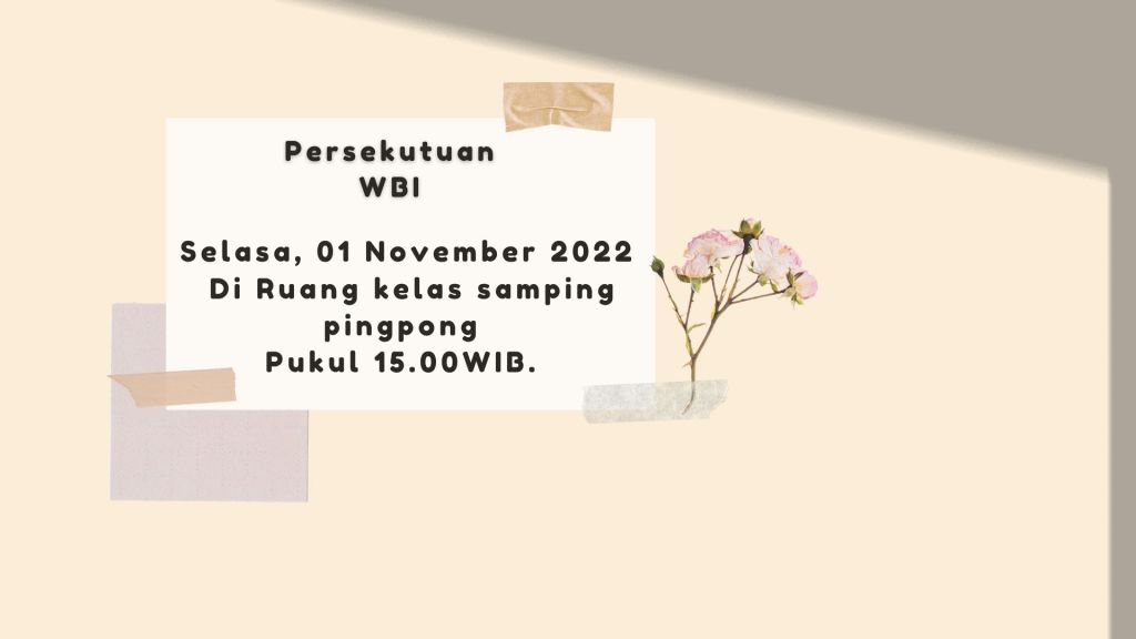Seluruh Kaum wanita diundang hadir dalam Persekutuan WBI Selasa, 01 November 2022 di ruang kelas samping lapangan pingpong dengan acara “ Sharing’’ Pukul 15.00 WIB