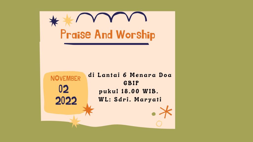 Seluruh Kaum Remaja diundang hadir dalam Persekutuan PRBI Sabtu, 05 November 2022 dengan acara “ True Worshiper” di Menara doa GBIP pukul 18.00 WIB.