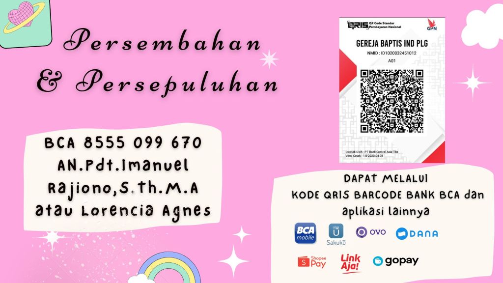 Transaksi Pemberian Persembahan dan Persepuluhan dapat melalui Kode Barcode QRIS dari Bank BCA.
