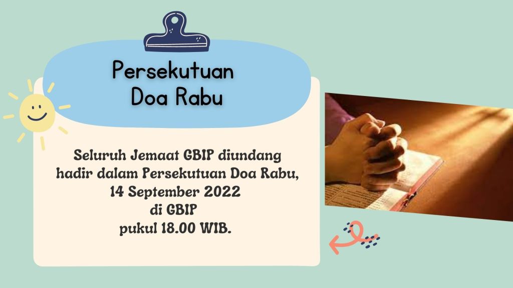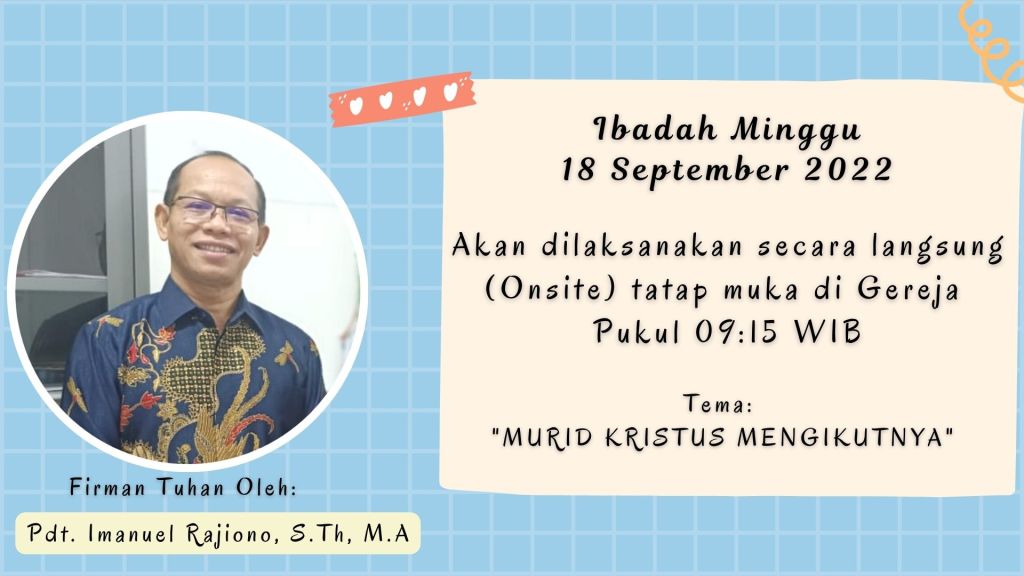 Ibadah Minggu Pagi, 11 September 2022 | Pukul 09.15 WIB |