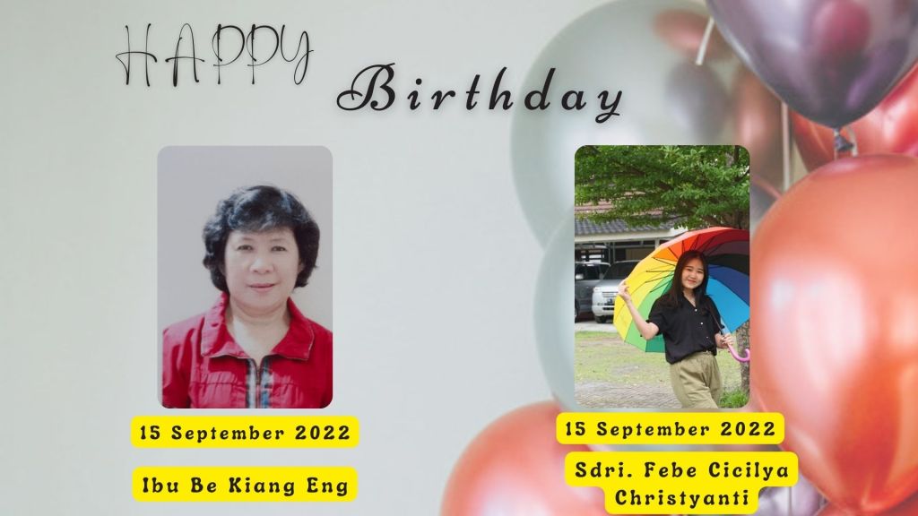 Pdt. Imanuel dan Sidang Jemaat GBIP, mengucapkan Selamat kepada anggota gereja kita yang berulang tahun dalam minggu ini :