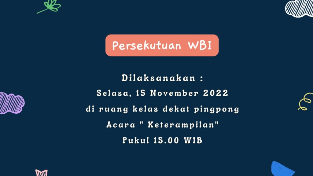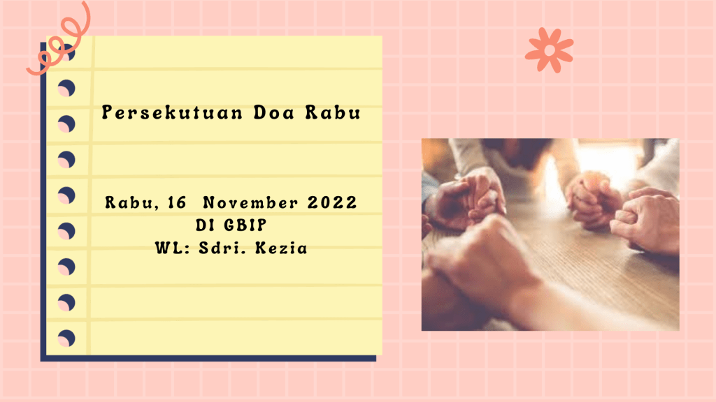 Seluruh Kaum wanita diundang hadir dalam Persekutuan WBI Selasa, 15 November 2022 pukul 15.00 WIB di ruang kelas dekat pingpong. Dengan acara “ Keterampilan’’