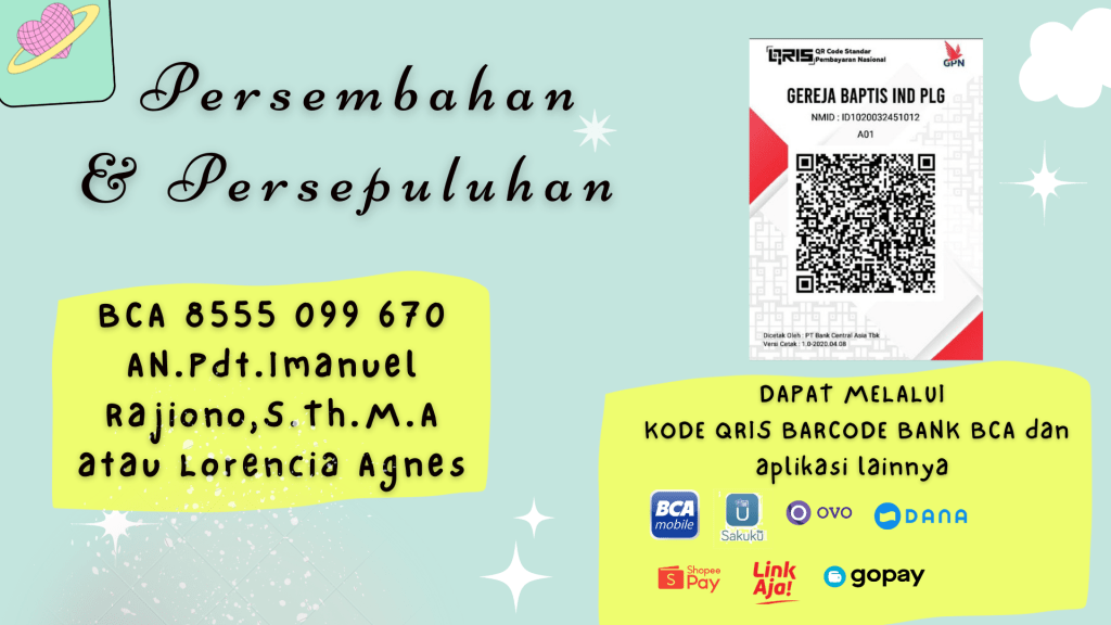 Transaksi Pemberian Persembahan dan Persepuluhan dapat melalui Kode Barcode QRIS dari Bank BCA.