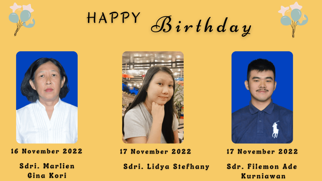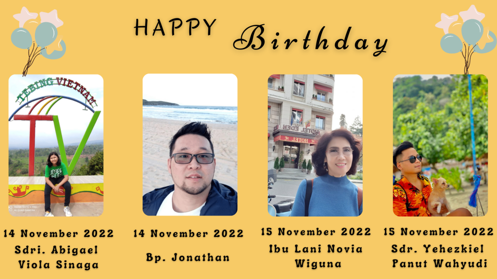 Pdt. Imanuel dan Sidang Jemaat GBIP, mengucapkan Selamat kepada anggota gereja kita yang berulang tahun dalam minggu ini :