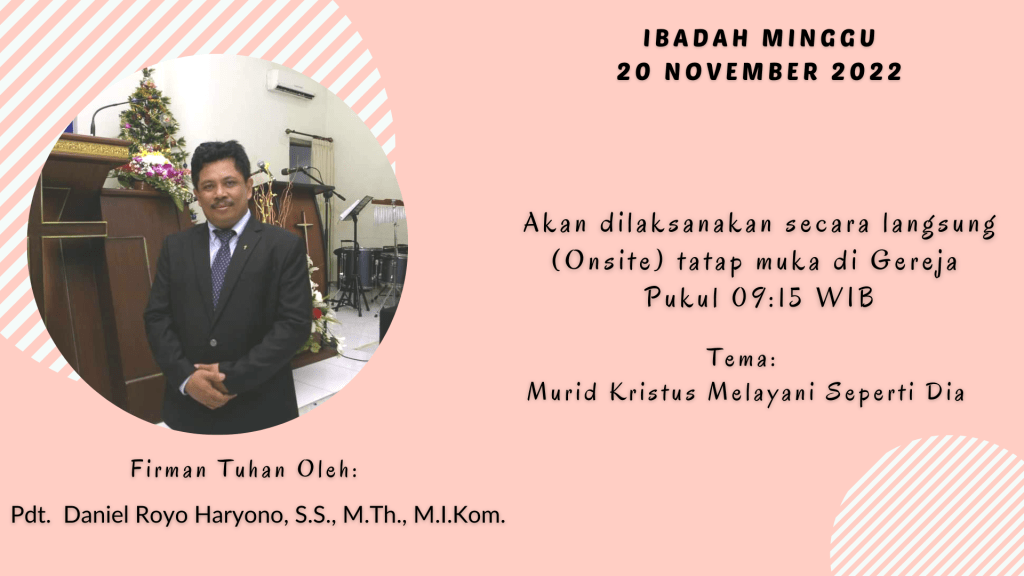 Ibadah Minggu Pagi, 13 November 2022 | Pukul 09.15 WIB |