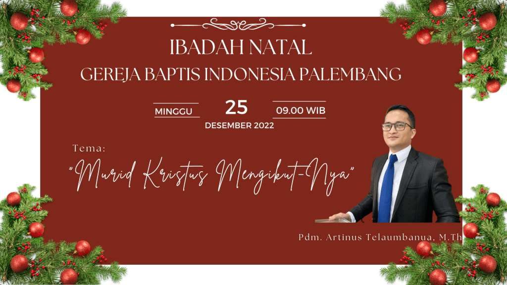 Kegiatan Ibadah Natal, 25 Desember 2022 di laksanakan secara langsung Pk. 09.00 WIB, dengan Prokes yang ketat, dalam 1 bangku sudah boleh untuk 4-5 orang. Firman Tuhan akan disampaikan oleh :Pdm. Artinus Telaumbanua, M.Th