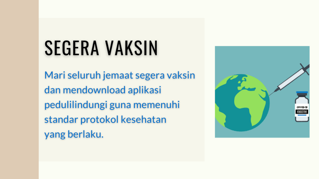 Diinformasikan kepada segenap Jemaat GBIP, kegiatan Ibadah Minggu, 27 November 2022 dilaksanakan secara langsung Pk. 09.15 WIB, dengan Prokes yang ketat, dalam 1 bangku sudah boleh untuk 4-5 orang. Firman Tuhan akan disampaikan oleh Pdt. Imanuel Rajiono, S.Th, M.A