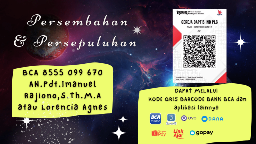 Transaksi Pemberian Persembahan dan Persepuluhan dapat melalui Kode Barcode QRIS dari Bank BCA.