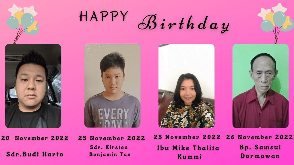 Pdt. Imanuel dan Sidang Jemaat GBIP, mengucapkan Selamat kepada anggota gereja kita yang berulang tahun dalam minggu ini :