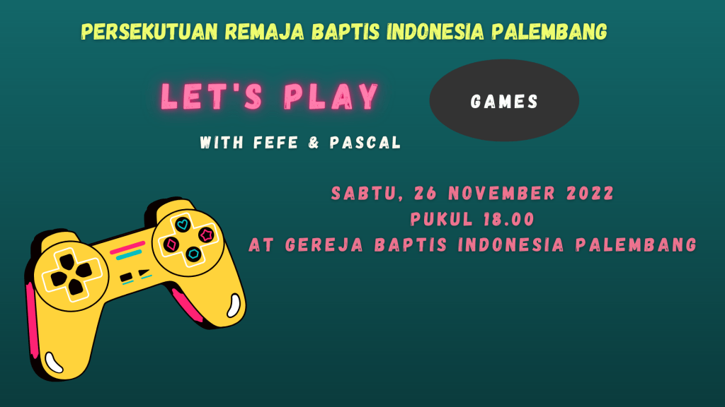 Seluruh Kaum Remaja diundang hadir dalam Persekutuan PRBI pada Sabtu, 26 November 2022 pukul 18.00 WIB di GBIP, dengan acara “Let’s Play”