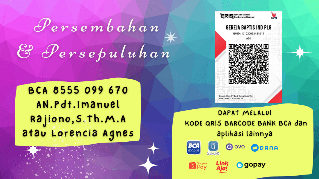 Transaksi Pemberian Persembahan dan Persepuluhan dapat melalui Kode Barcode QRIS dari Bank BCA.