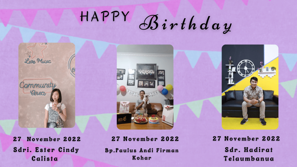 Pdt. Imanuel dan Sidang Jemaat GBIP, mengucapkan Selamat kepada anggota gereja kita yang berulang tahun dalam minggu ini :