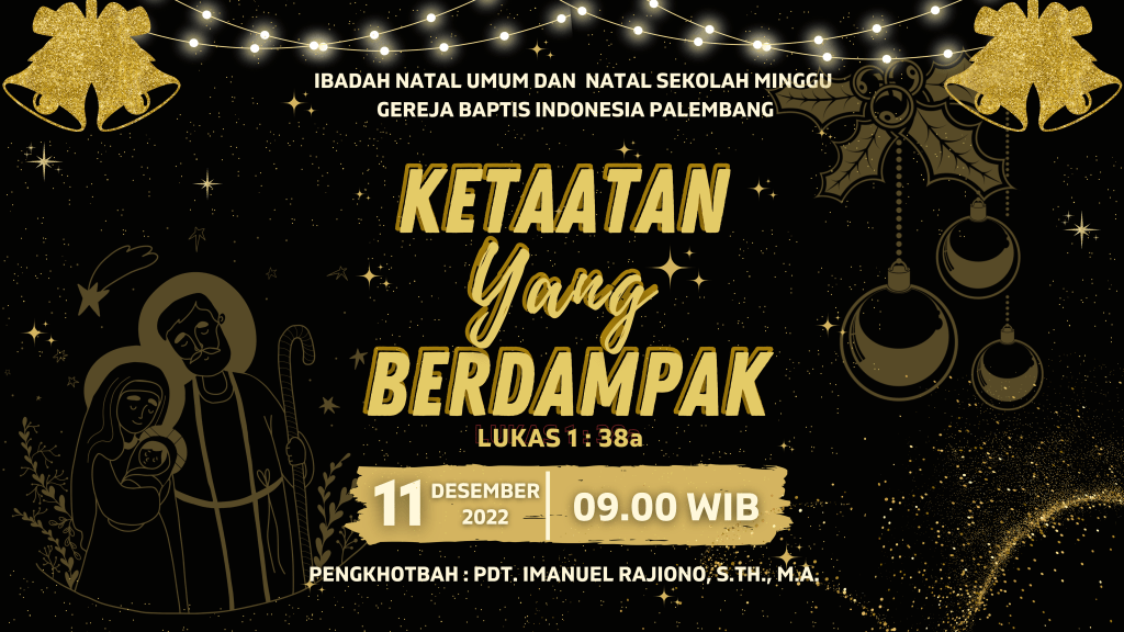 Segenap Jemaat GBIP, di undang untuk hadir dalam Acara Ibadah Perayaan Natal Umum & Natal Sekolah Minggu, tgl. 11 Desember 2022 dilaksanakan pada Pk. 09.00 WIB, Tema : ” Ketaatan yang Berdampak ” ( Lukas 1 : 38 a). Firman Tuhan akan disampaikan oleh Pdt. Imanuel Rajiono, S.Th, M.A