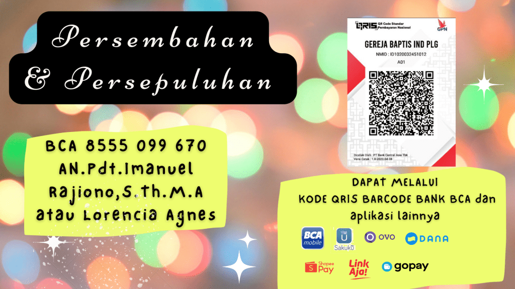 Transaksi Pemberian Persembahan dan Persepuluhan dapat melalui Kode Barcode QRIS dari Bank BCA.